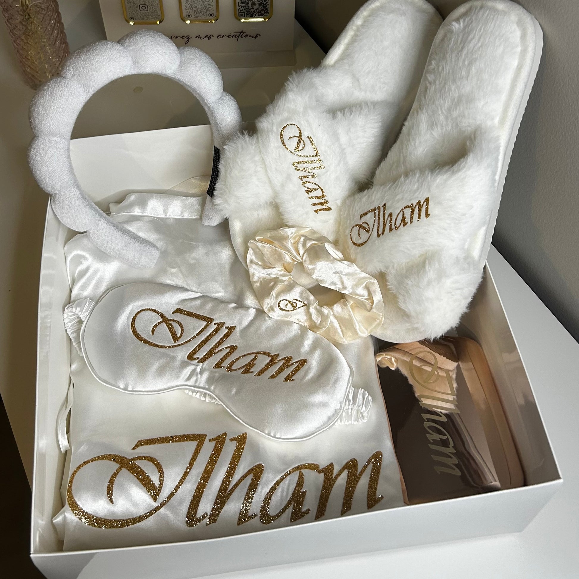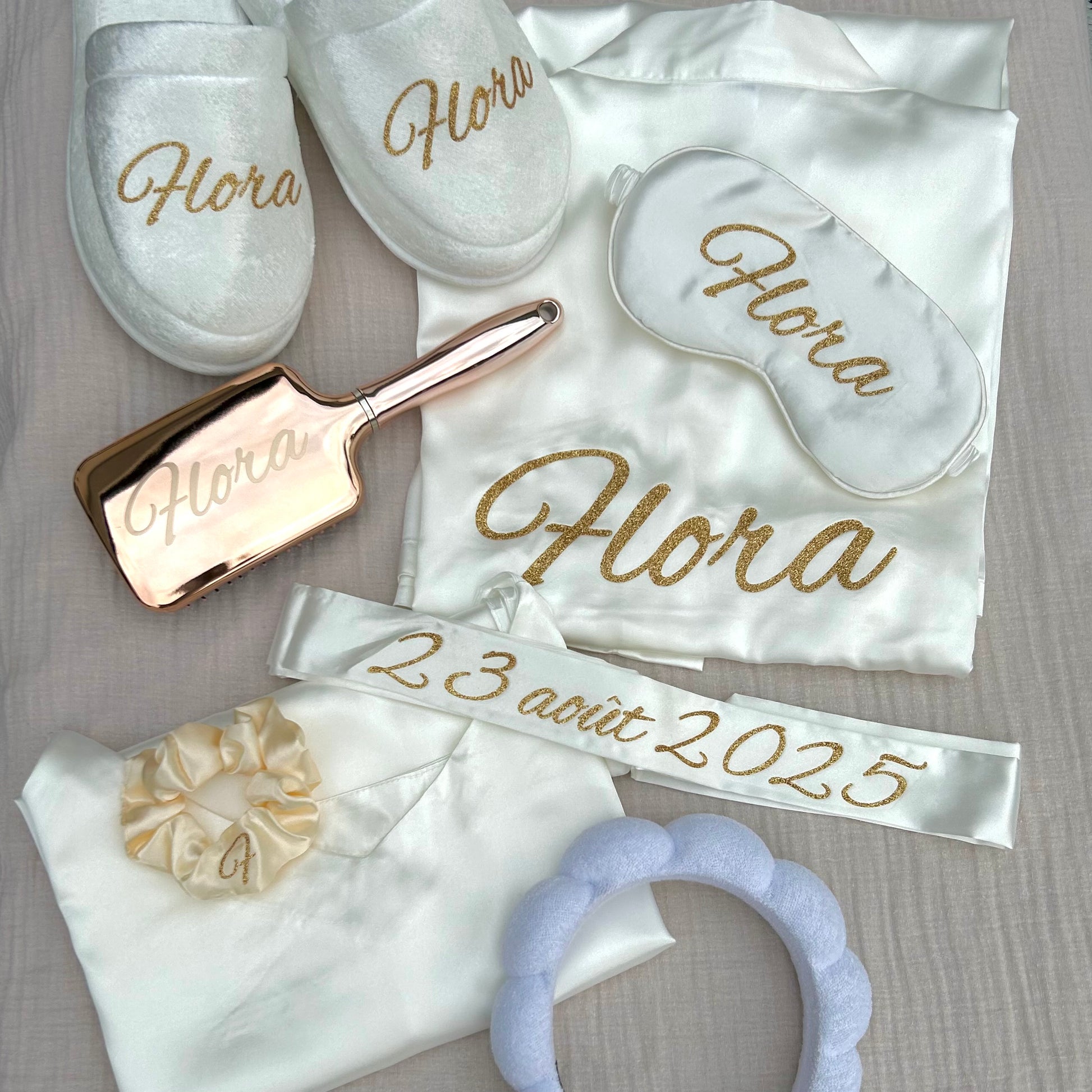- Pyjama nuisette + peignoir satiné personnalisé : un ensemble doux, léger et élégant pour un confort total.