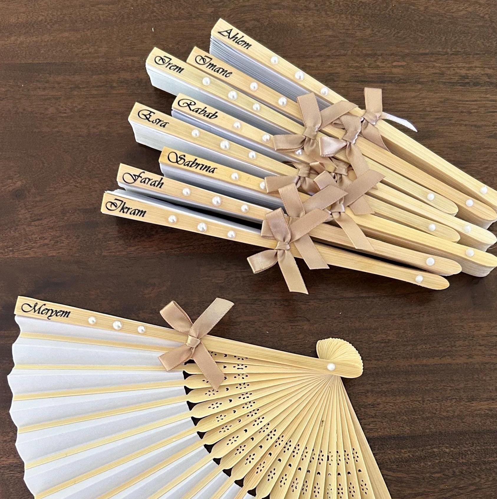 Eventail idéal pour les mariages en été ! Vous pouvez les personnaliser avec les prénoms des mariées, afin d'en faire des cadeaux invités ou vous pouvez les personnaliser avec le prénom de vos demoiselles d'honneur afin de leur faire un petit cadeau 🥰