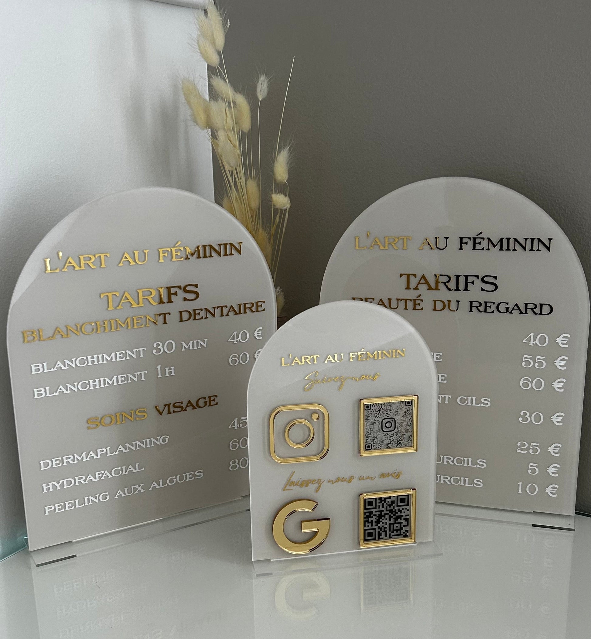 Grille tarifaire, idéale pour afficher vos tarifs dans votre institut