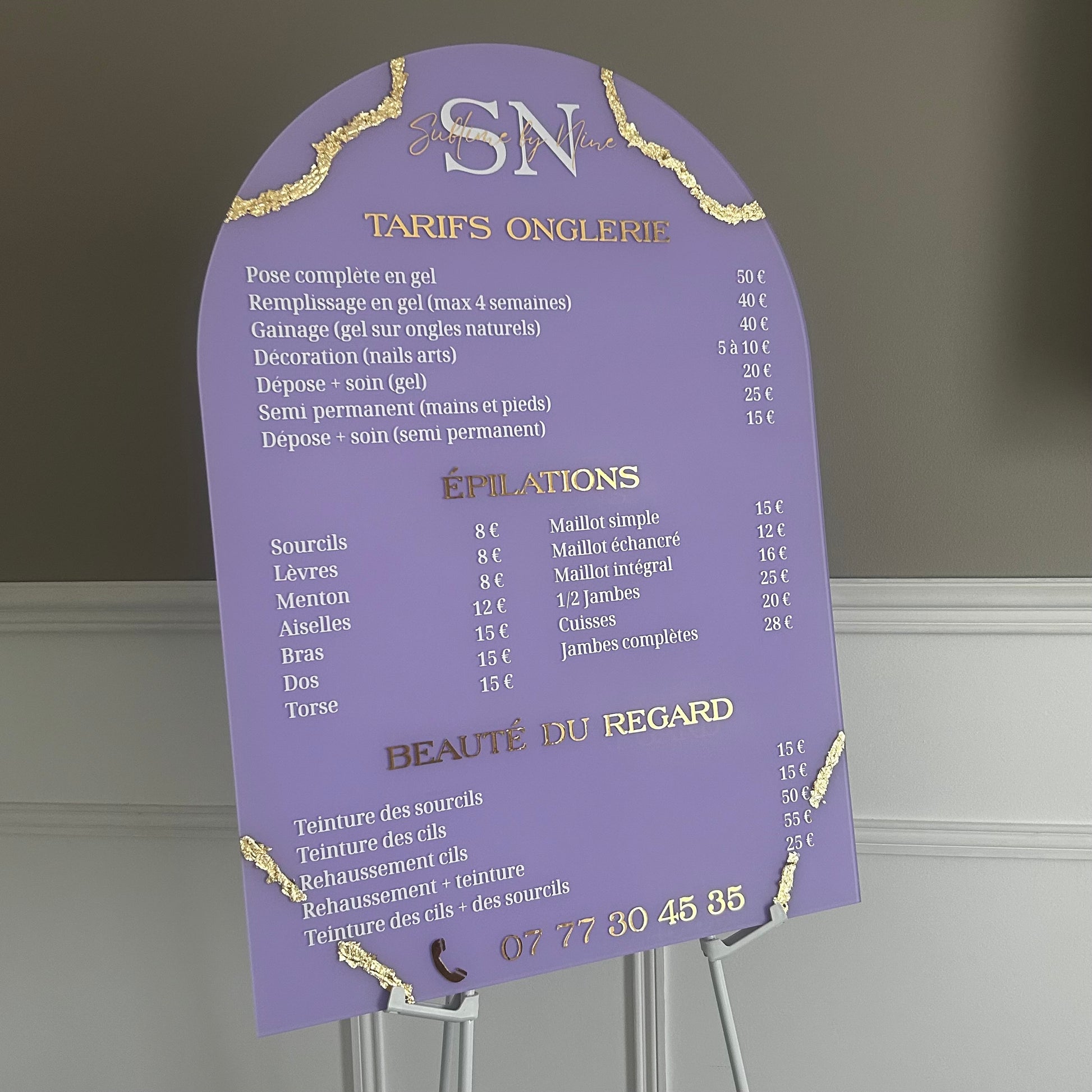 Grille tarifaire, idéale pour afficher vos tarifs dans votre institut