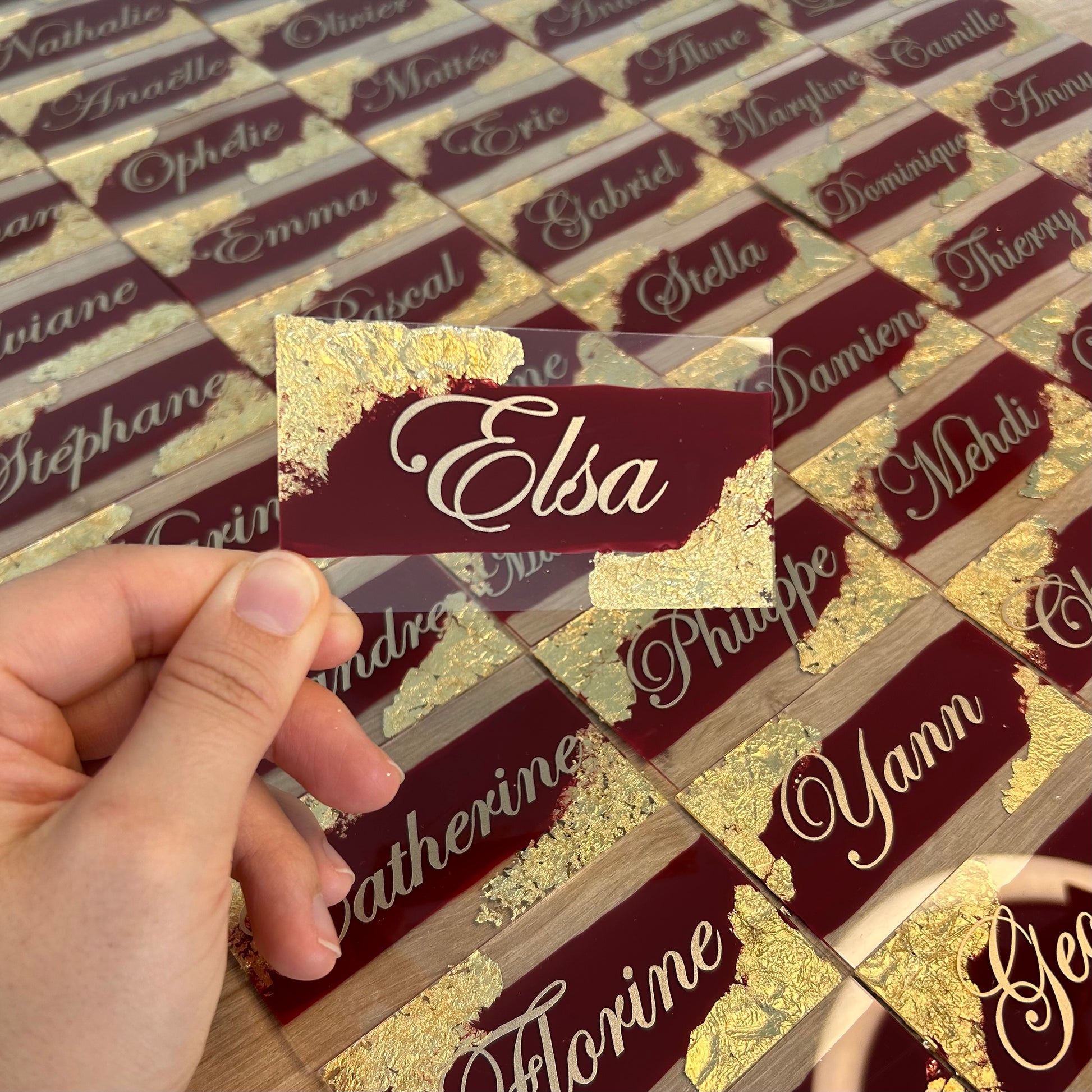 Marque place avec prénoms de vos invités ! Très pratique pour placer vos convives de plus ils pourront garder leurs marques places en souvenirs ✨