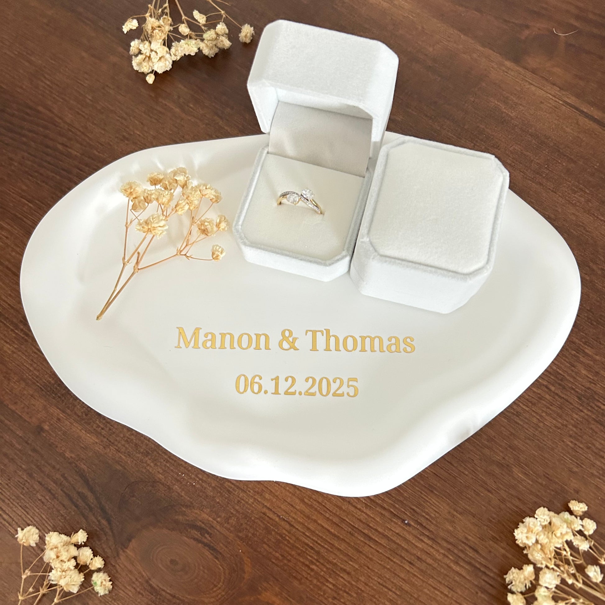 Après la cérémonie, ce plateau nuage trouvera facilement sa place dans votre intérieur : vide-poche, objet décoratif ou symbole de votre histoire, il restera un témoin précieux de votre grand jour.